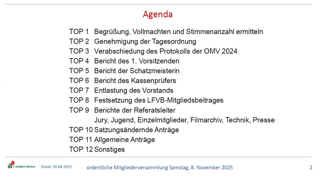 Am Samstag, den 8. November 2025 fand unsere diesjährige ordentliche Mitgliederversammlung (OMV) des LFVB statt. Es waren 14 Teilnehmer anwesend.